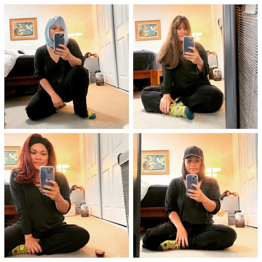On the evening of my infusion, I shaved my head about as short a buzz as I can after 5 days of contending with so much shedding and scalp pain. So it was time to let go and live. (It’s not quite for public viewing yet. It’s still patches of stubble with patches of lily white bald scalp. It also feels quite sensitive and really cold so my sleep hat — a super soft bamboo material with some spandex— stays on full time.) I purchased some cheap fun wigs and have been gifted a couple (another ombré black and turquoise one not pictured). There’s another one that I did get fitted and ordered at the UCSF cancer center mini wig salon that’s still yet to arrive. That one is a higher price point. I have a wig prescription from my doctor (insurance speak “cranial prosthesis”) but my insurance package does not cover it.